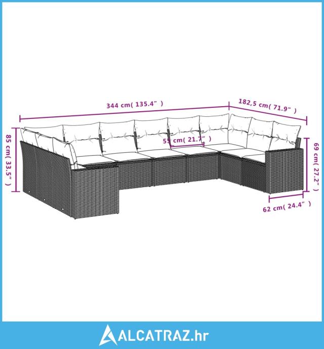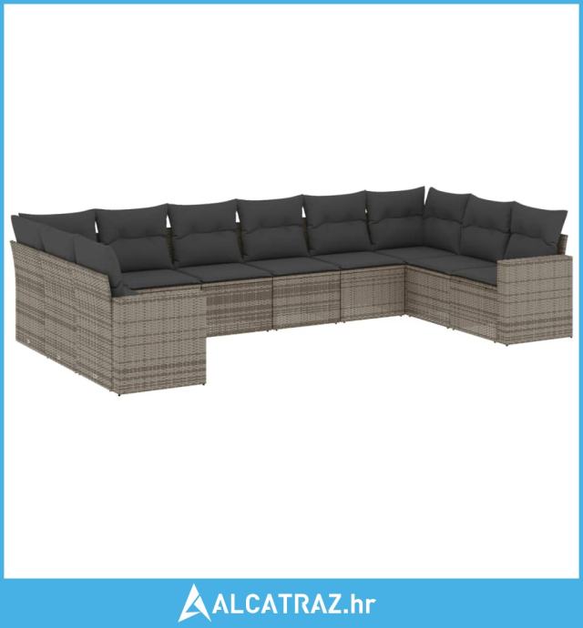 10-dijelni set vrtnih sofa od poliratana s jastucima sivi - NOVO