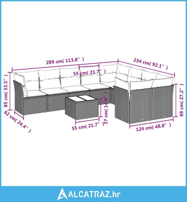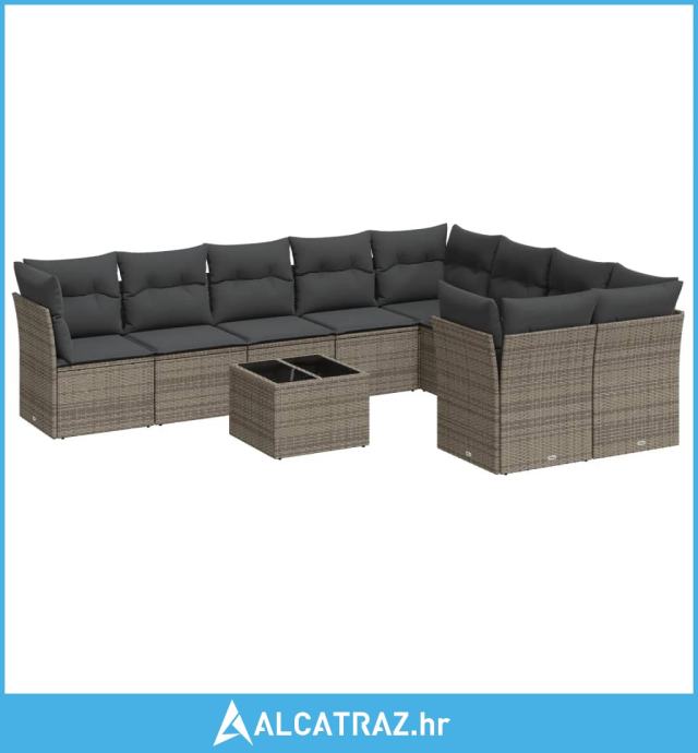 10-dijelni set vrtnih sofa od poliratana s jastucima sivi - NOVO