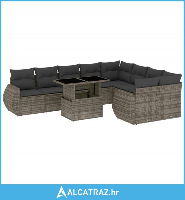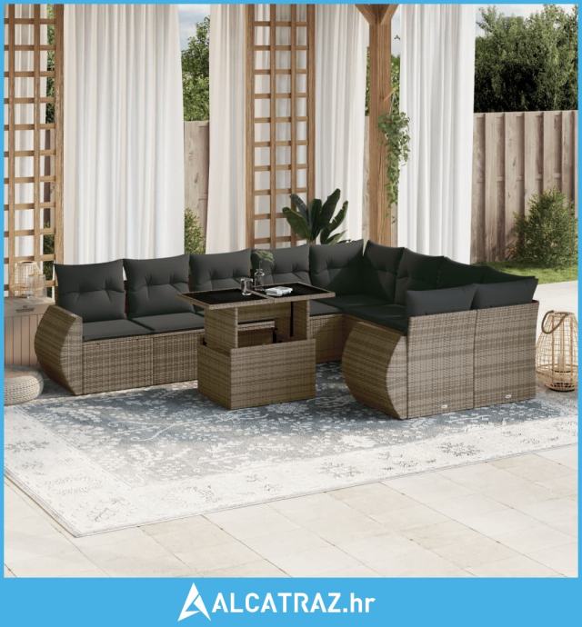 10-dijelni set vrtnih sofa od poliratana s jastucima sivi - NOVO