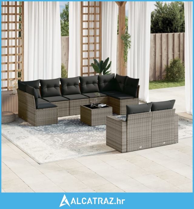 10-dijelni set vrtnih sofa od poliratana s jastucima sivi - NOVO