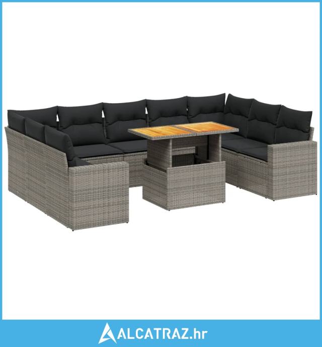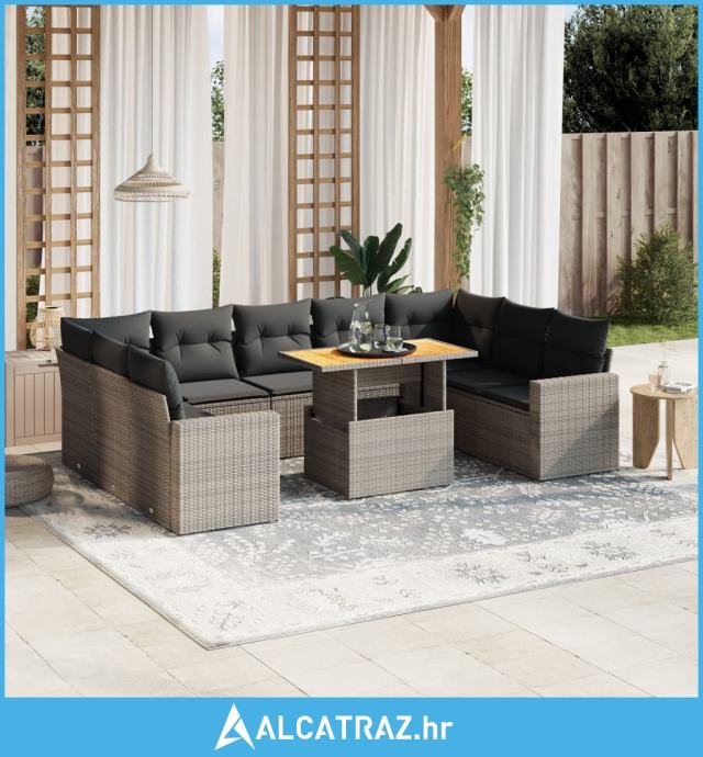 10-dijelni set vrtnih sofa od poliratana s jastucima sivi - NOVO