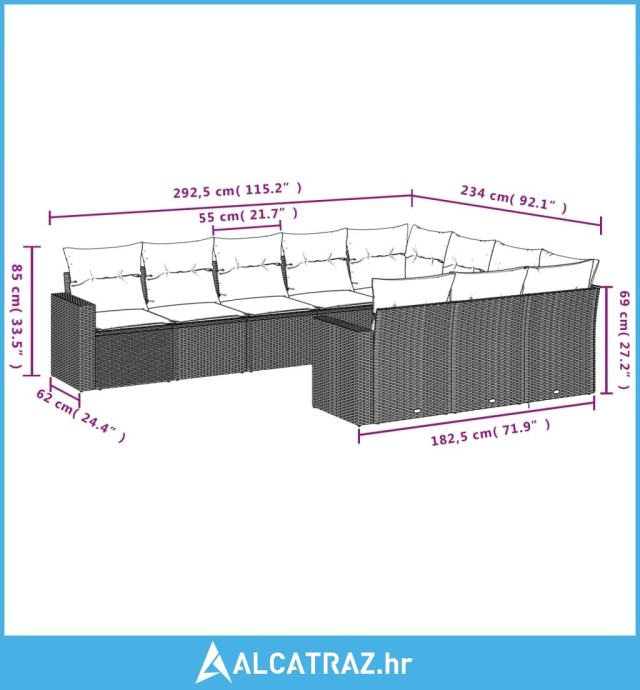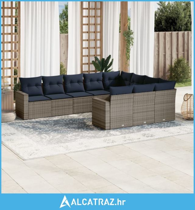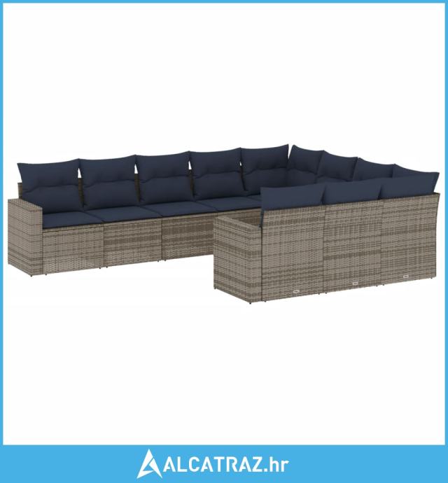 10-dijelni set vrtnih sofa od poliratana s jastucima sivi - NOVO
