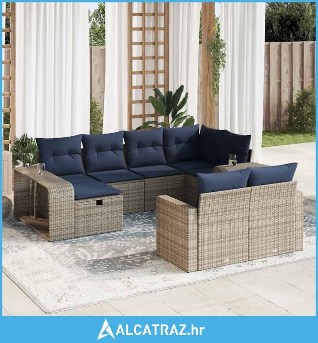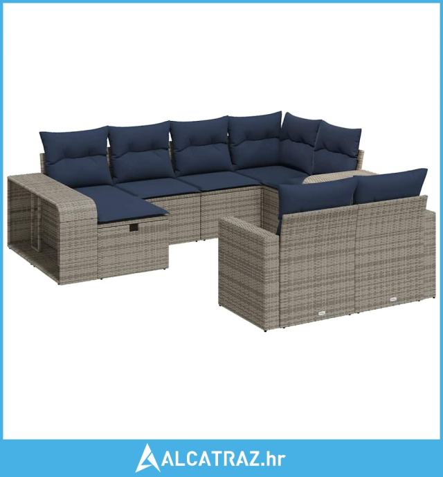 10-dijelni set vrtnih sofa od poliratana s jastucima sivi - NOVO
