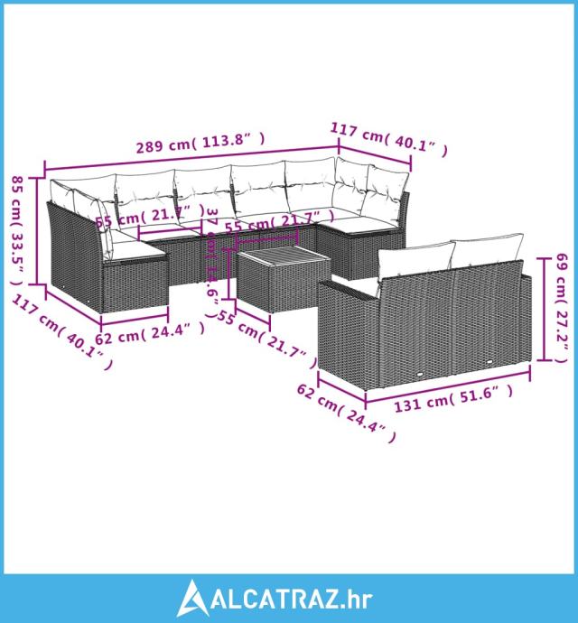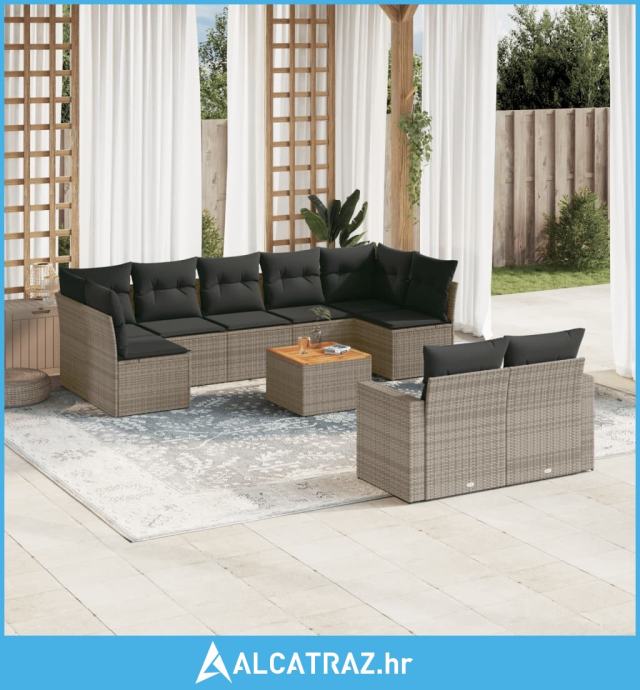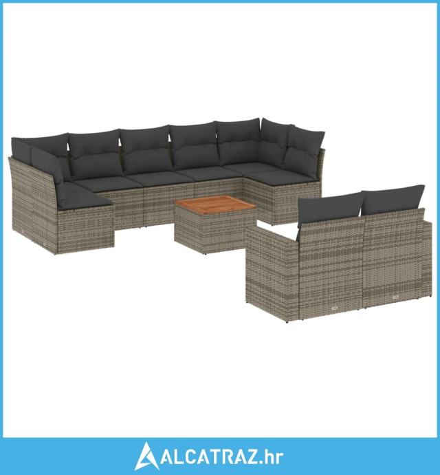 10-dijelni set vrtnih sofa od poliratana s jastucima sivi - NOVO
