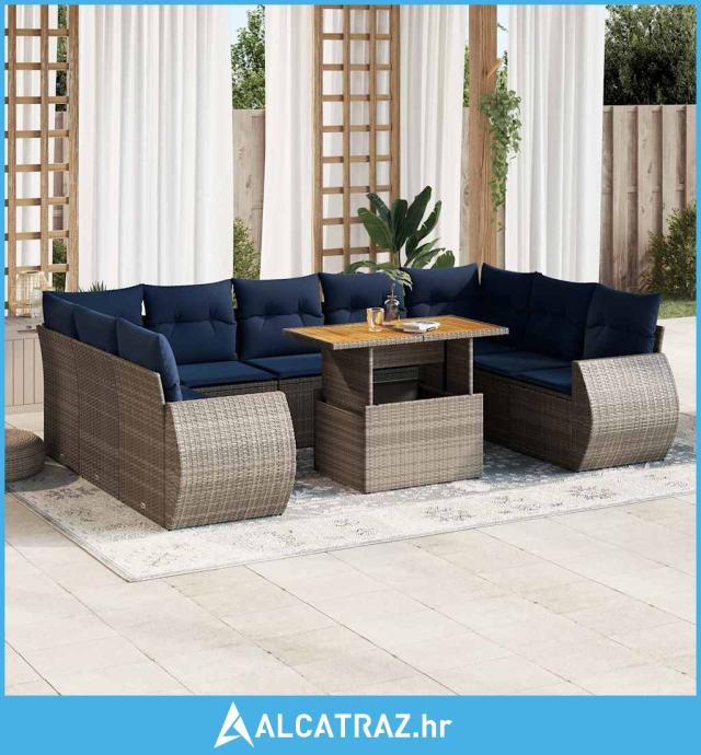 10-dijelni set vrtnih sofa od poliratana s jastucima sivi - NOVO