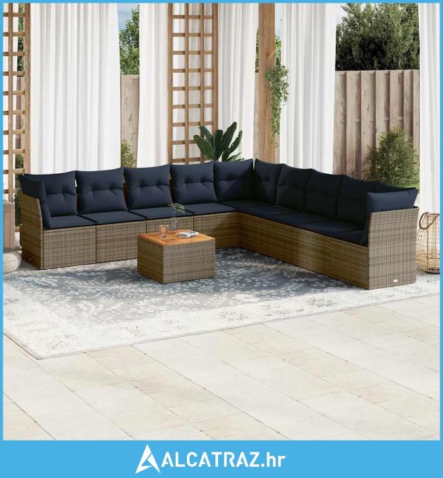 10-dijelni set vrtnih sofa od poliratana s jastucima sivi - NOVO