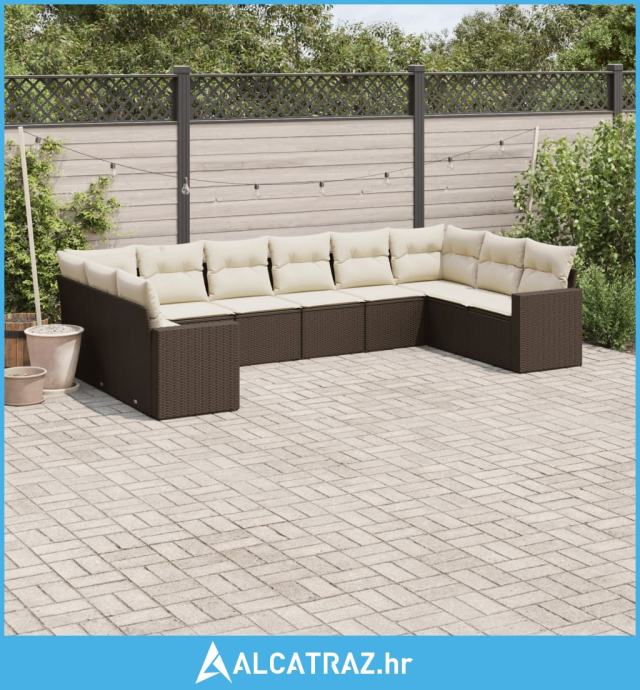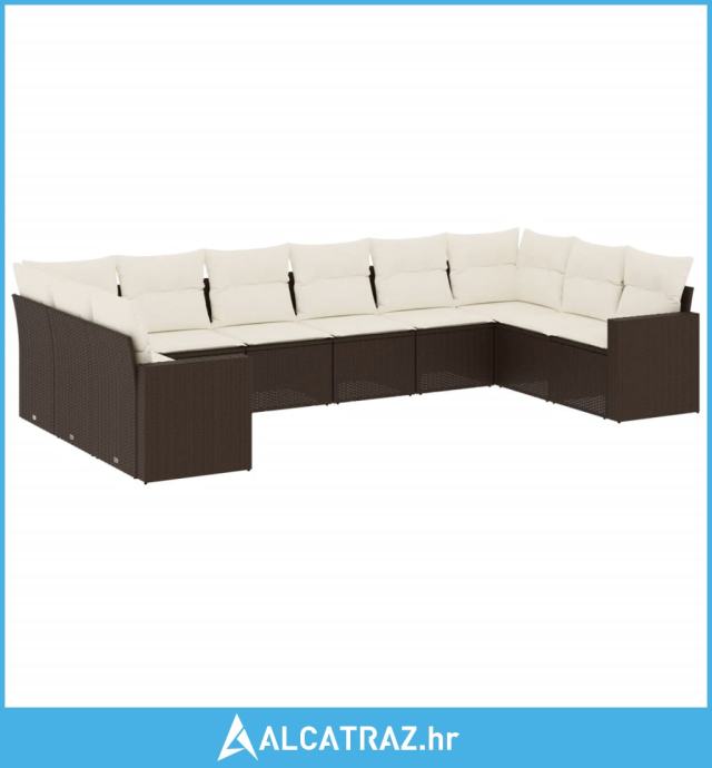 10-dijelni set vrtnih sofa od poliratana s jastucima smeđi - NOVO