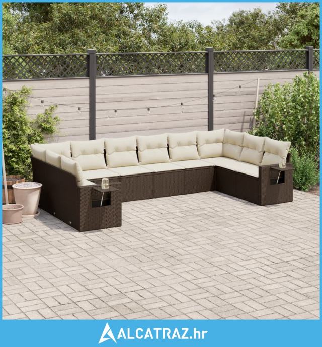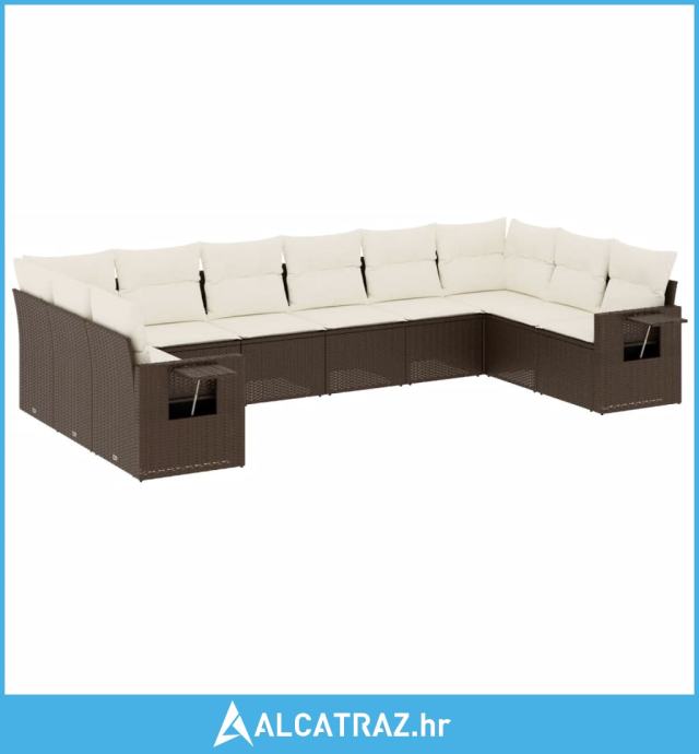 10-dijelni set vrtnih sofa od poliratana s jastucima smeđi - NOVO