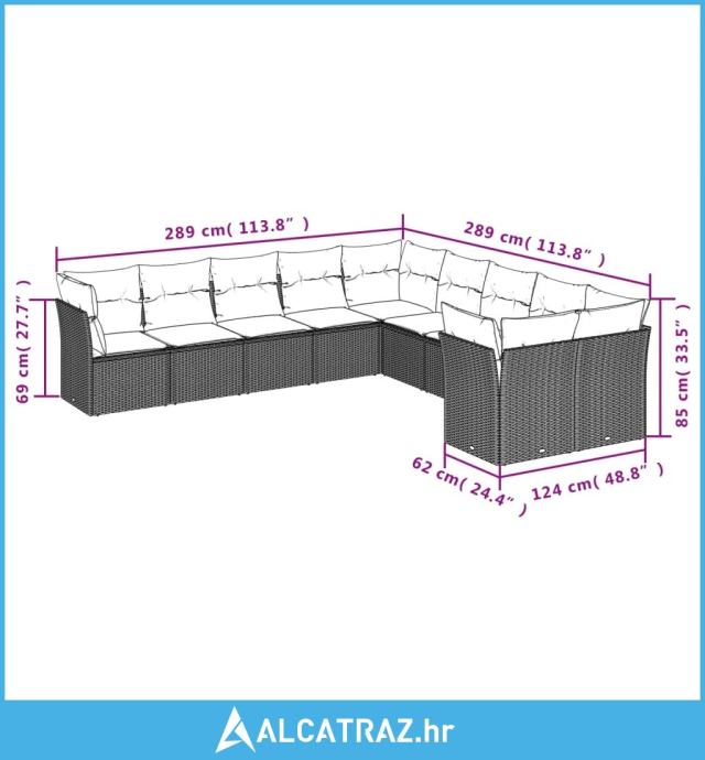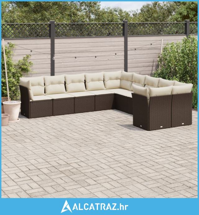 10-dijelni set vrtnih sofa od poliratana s jastucima smeđi - NOVO