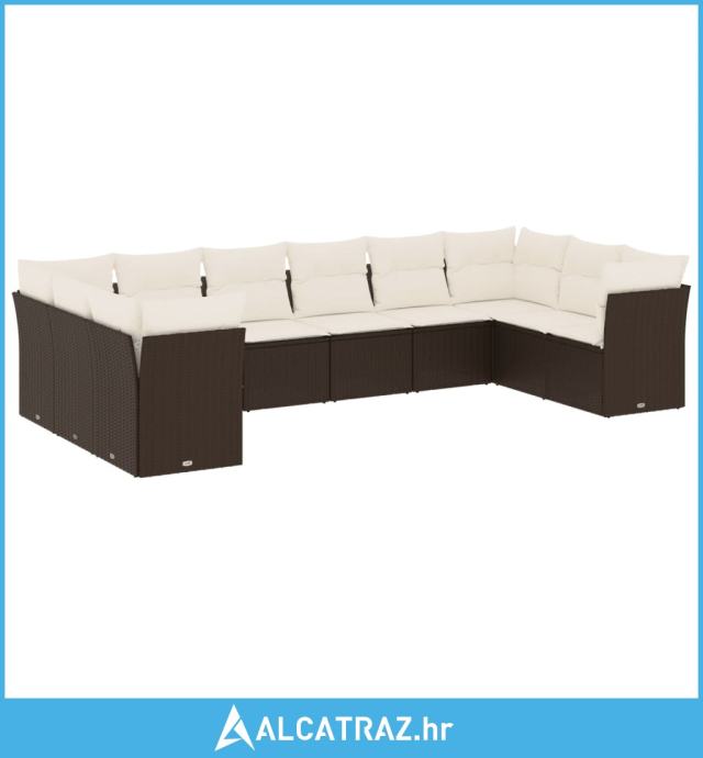 10-dijelni set vrtnih sofa od poliratana s jastucima smeđi - NOVO