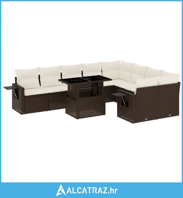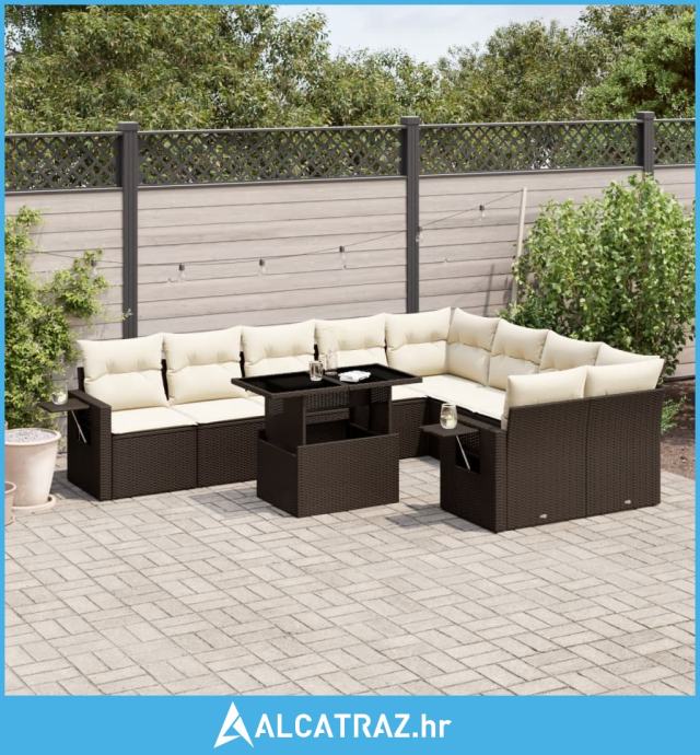 10-dijelni set vrtnih sofa od poliratana s jastucima smeđi - NOVO