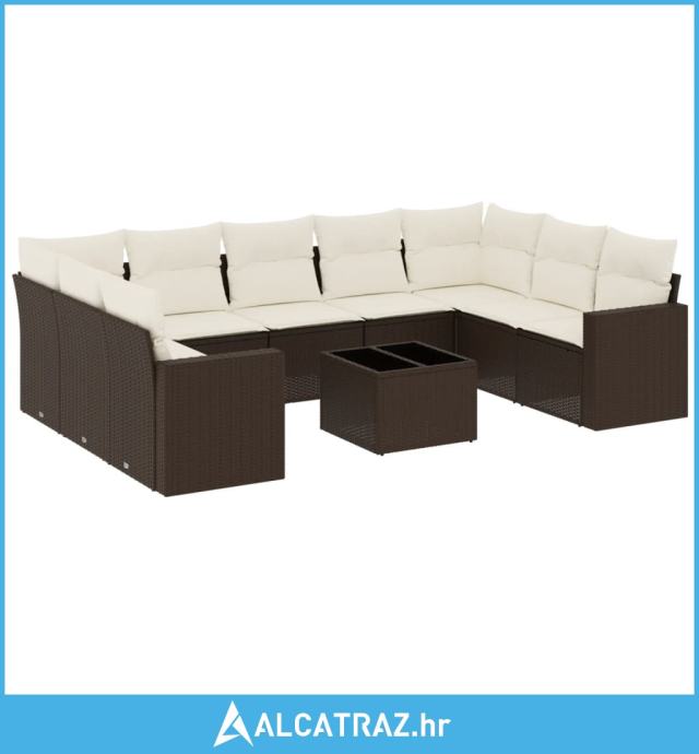 10-dijelni set vrtnih sofa od poliratana s jastucima smeđi - NOVO
