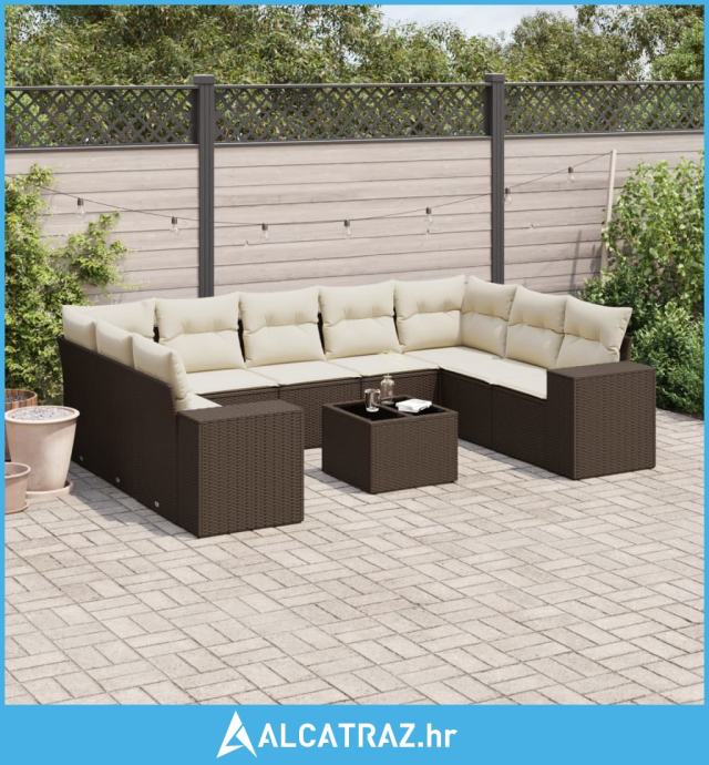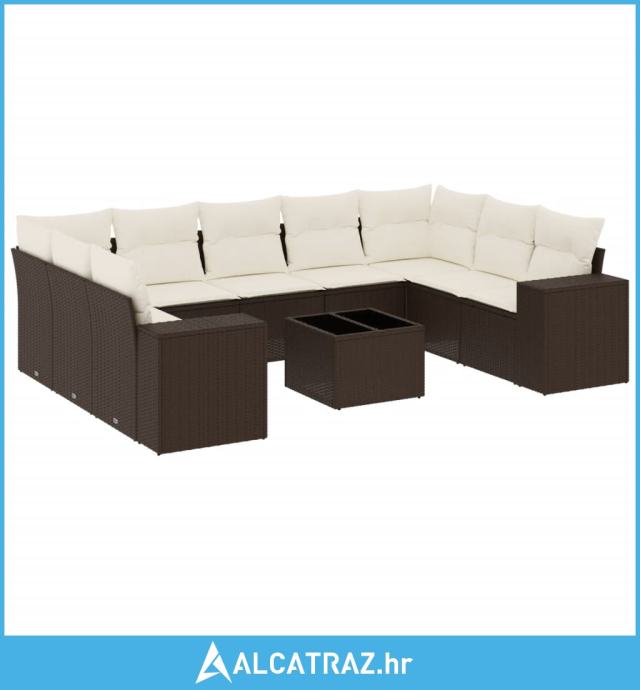 10-dijelni set vrtnih sofa od poliratana s jastucima smeđi - NOVO
