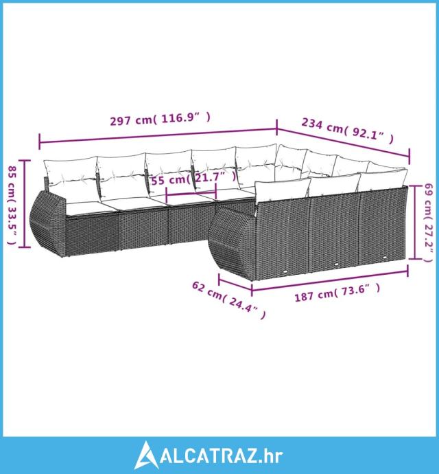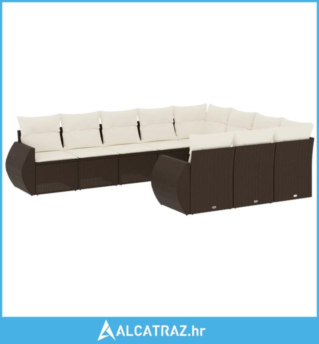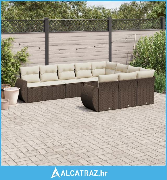 10-dijelni set vrtnih sofa od poliratana s jastucima smeđi - NOVO