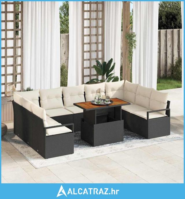 10-dijelni set vrtnog namještaja s jastučićima crni poli ratan - NOVO