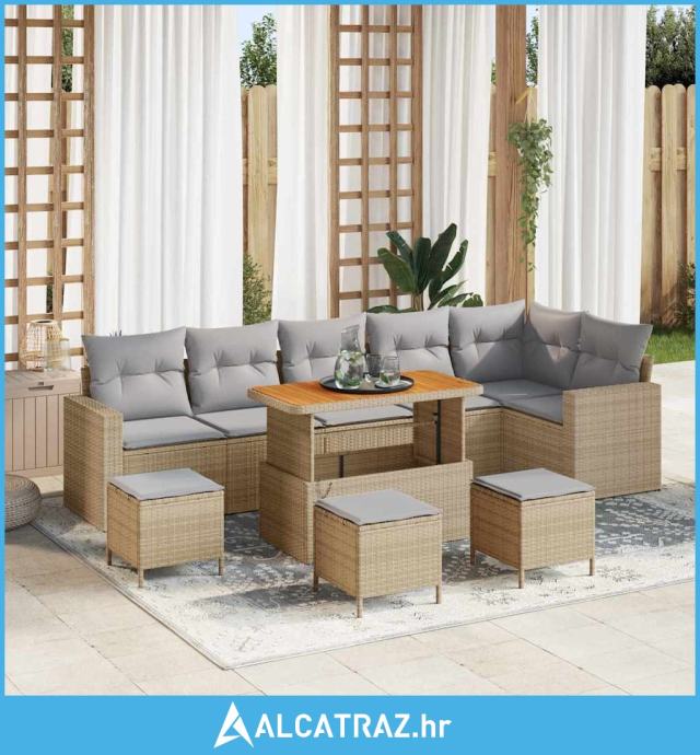 10-dijelni vrtni kauč s jastučićima Bež Poli ratan Akacija - NOVO