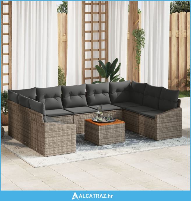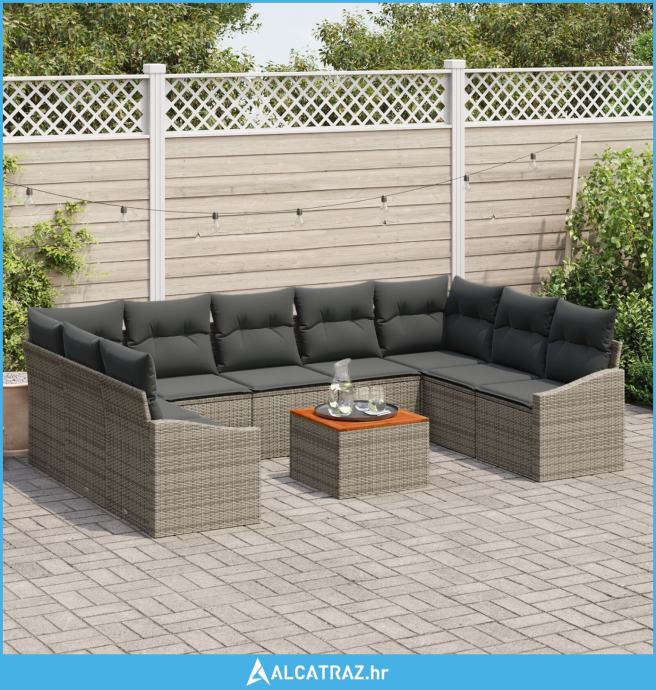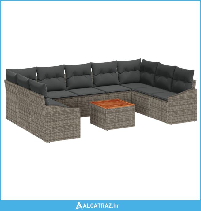 10-dijelni vrtni kauč set s jastučićima sivi poli ratan akacija - NOVO