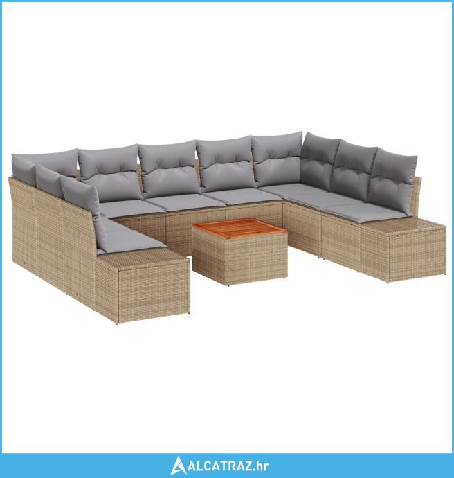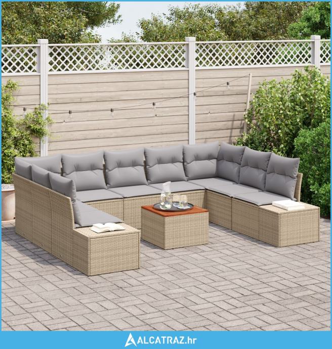 10-dijelni vrtni set sofe s jastučićima Bež poli ratan akacija - NOVO