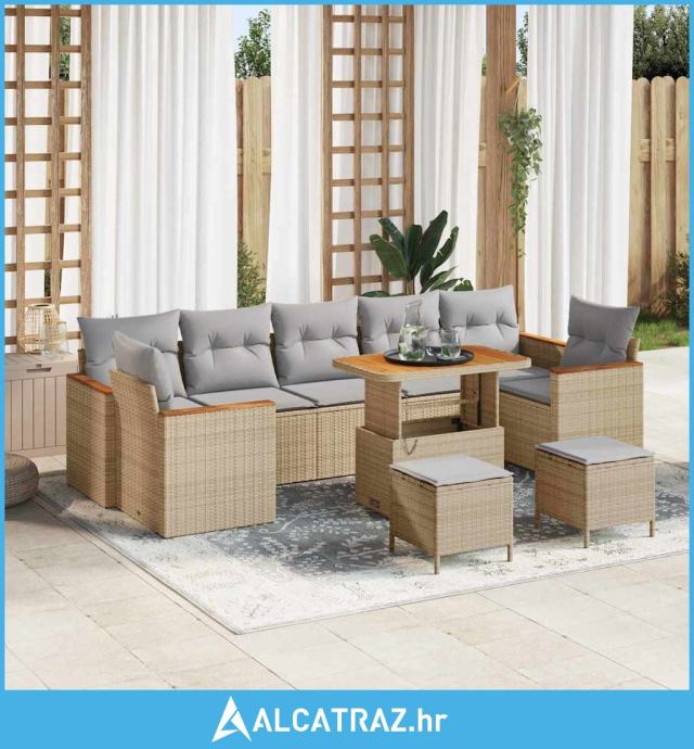 10-dijelni vrtni set sofe s jastučićima bež poli ratan akacija - NOVO