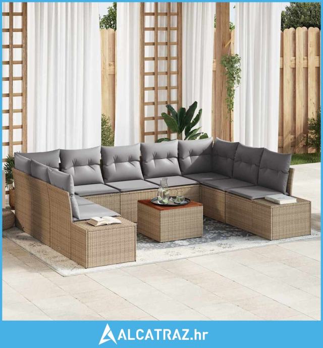 10 komadni vrtni sofa set s jastučićima Bež Poli ratan Akacija - NOVO