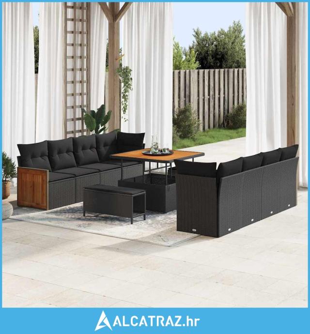 11-dijelna garnitura za vrt s jastucima crna poliratan akacija - NOVO