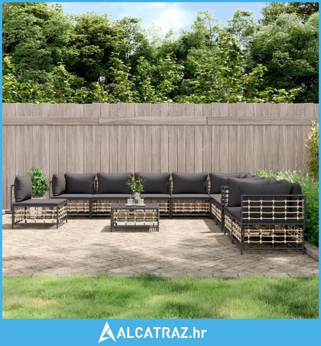 11-dijelna vrtna garnitura od poliratana s jastucima antracit - NOVO
