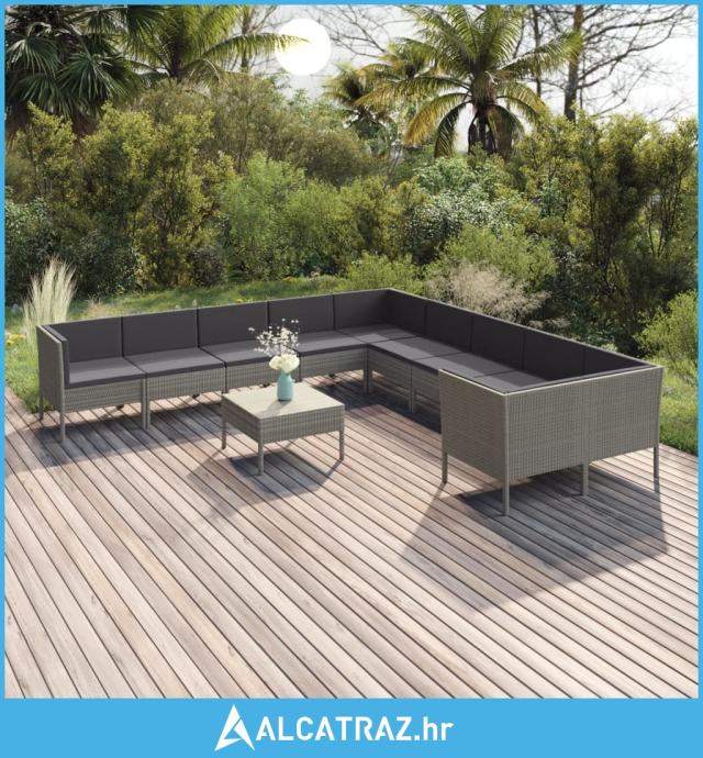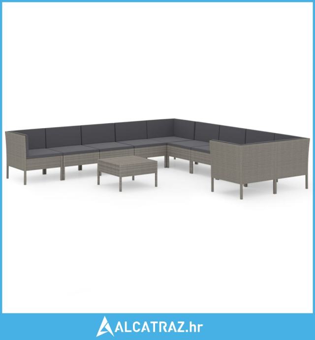 11-dijelna vrtna garnitura od poliratana s jastucima siva - NOVO
