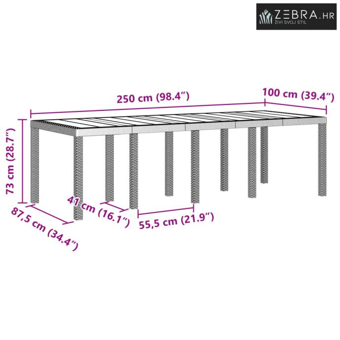 Ovaj elegantni Moderni vrtni stolni set kombinira suvremen dizajn s praktičnošću, čineći ga savršenim dodatkom za vanjske prostore. Idealno za objedovanje na otvorenom tijekom ljetnih mjeseci, njegova pravokutna konfiguracija podržava obiteljska okupljanja i elegantne večere. Fokusirajući se na jednostavnost i funkcionalnost, ovaj set kombinira čiste linije i minimalnu ornamentaciju kako bi stvorio mirnu vanjsku sredinu.