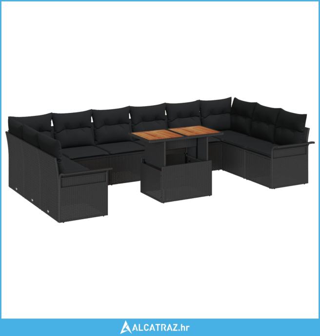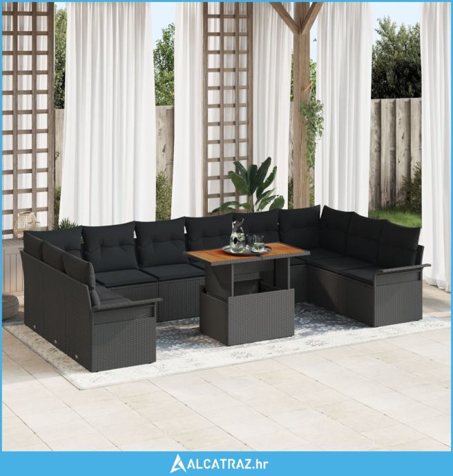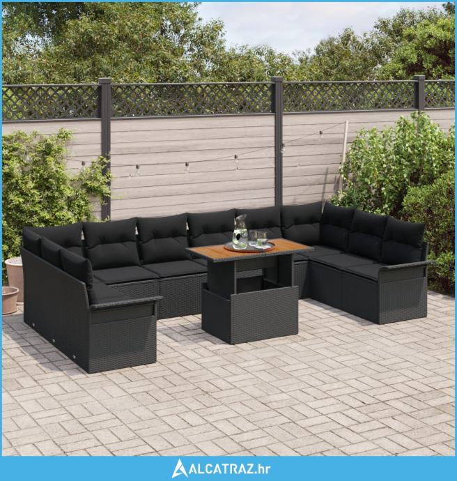 11-dijelni set za blagovanje u vrtu s jastučićima Crn Poliratan Bagrem