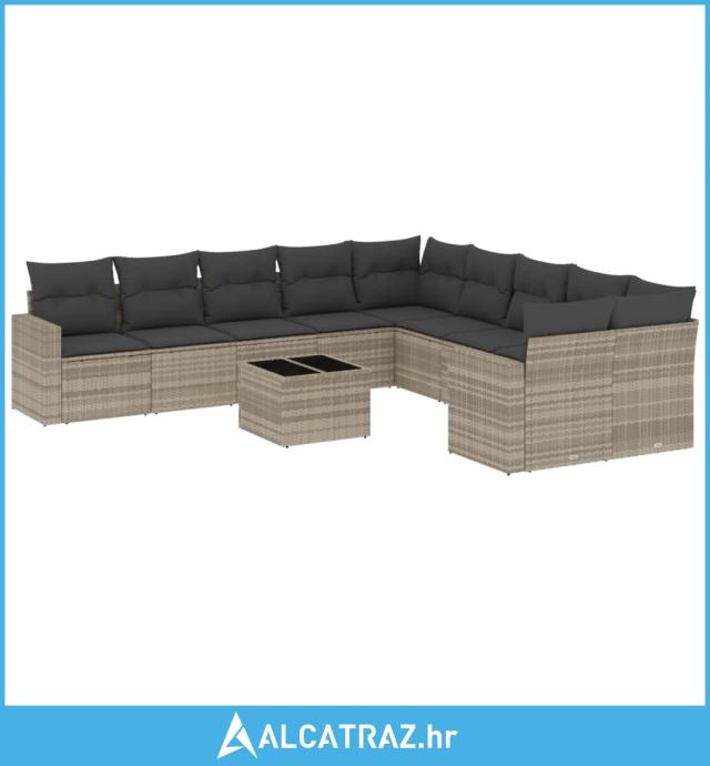 11-dijelni set vrtnih sofa poliratan s jastucima svijetlosivi - NOVO