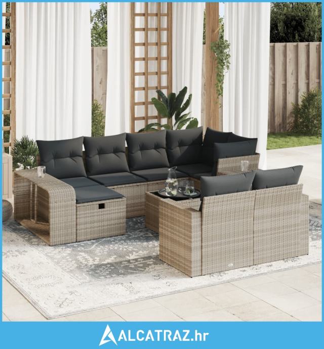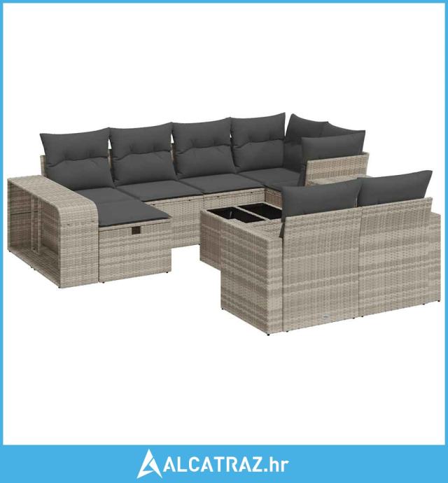 11-dijelni set vrtnih sofa poliratan s jastucima svijetlosivi - NOVO