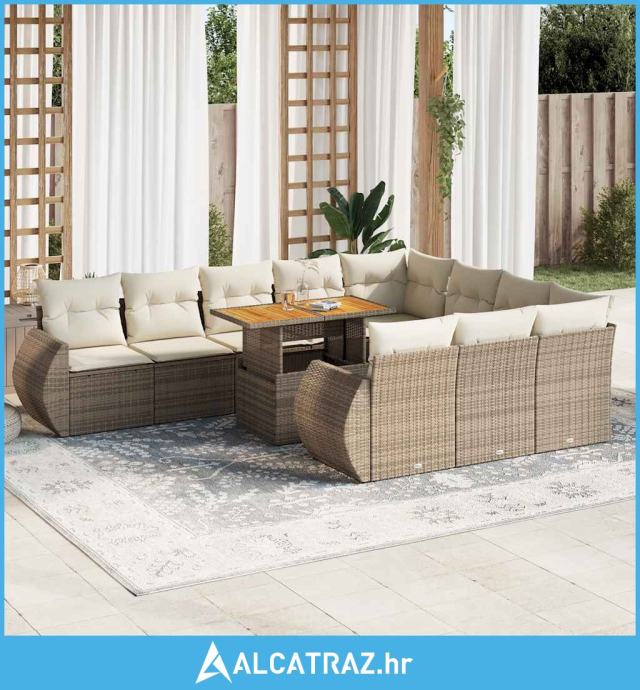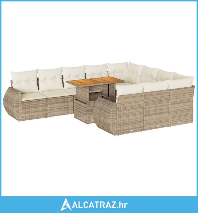 11-dijelni set vrtnih sofa od poliratana s jastucima bež - NOVO