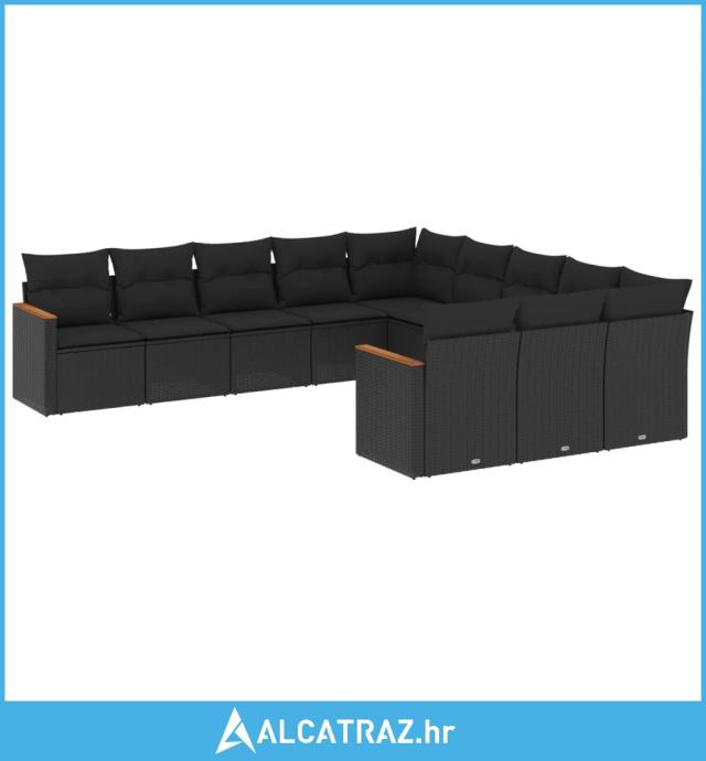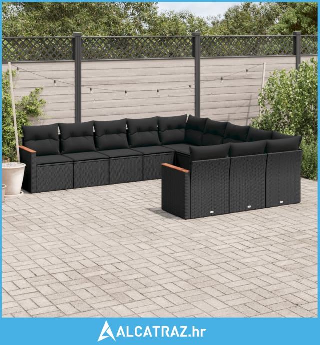 11-dijelni set vrtnih sofa od poliratana s jastucima crni - NOVO