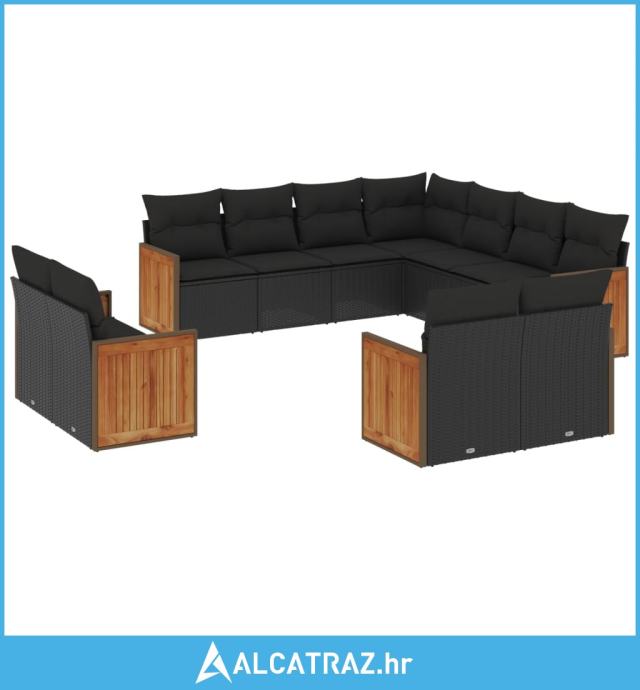 11-dijelni set vrtnih sofa od poliratana s jastucima crni - NOVO