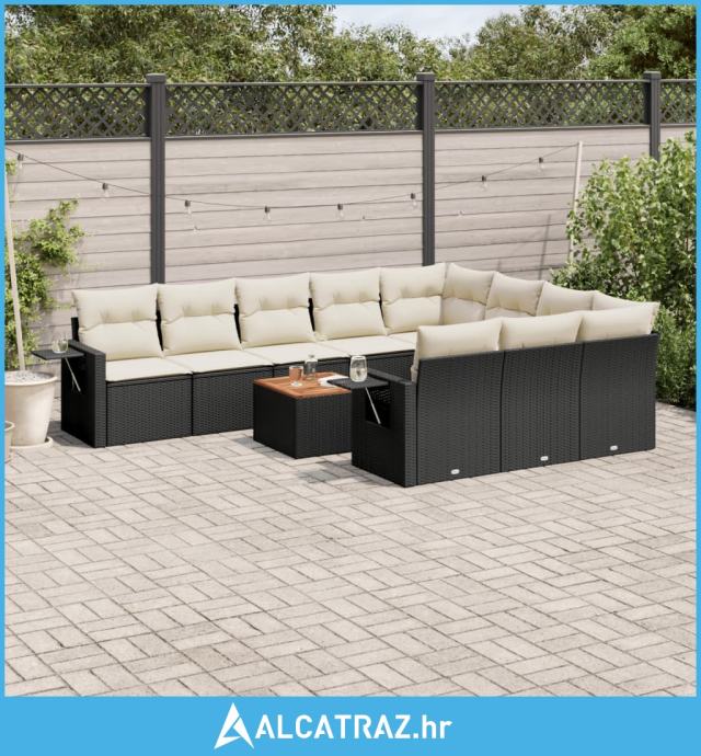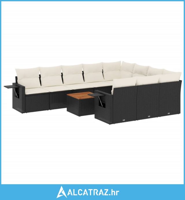 11-dijelni set vrtnih sofa od poliratana s jastucima crni - NOVO