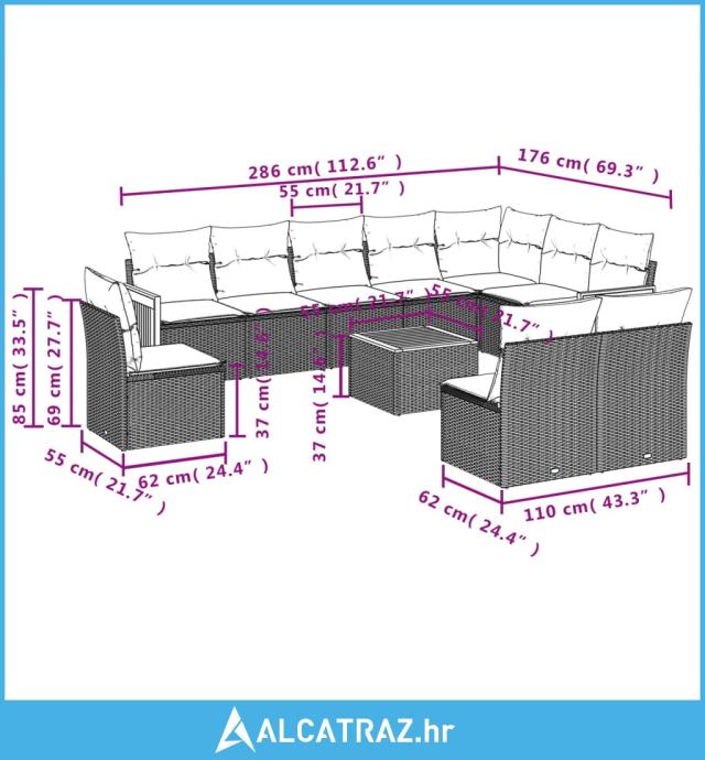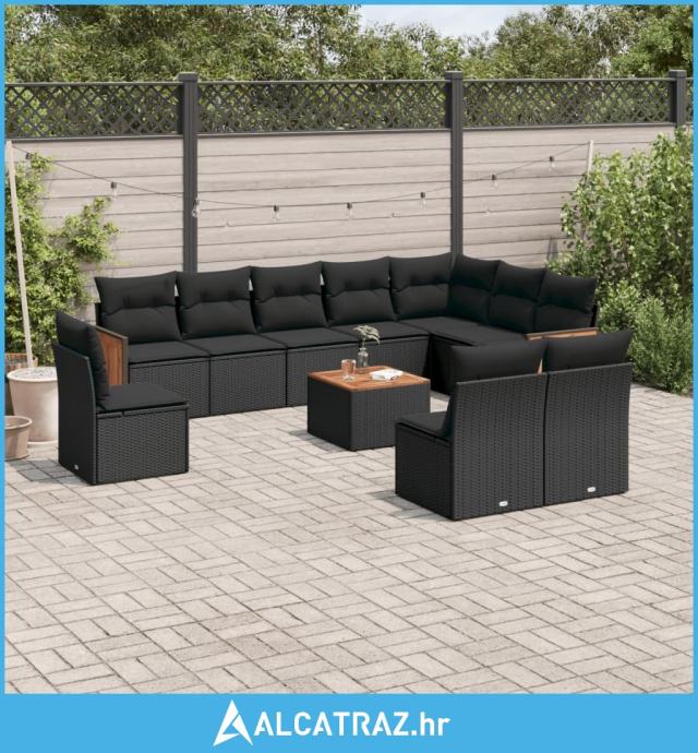 11-dijelni set vrtnih sofa od poliratana s jastucima crni - NOVO