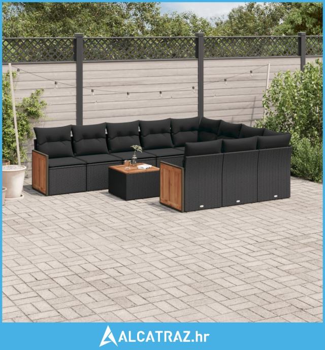 11-dijelni set vrtnih sofa od poliratana s jastucima crni - NOVO