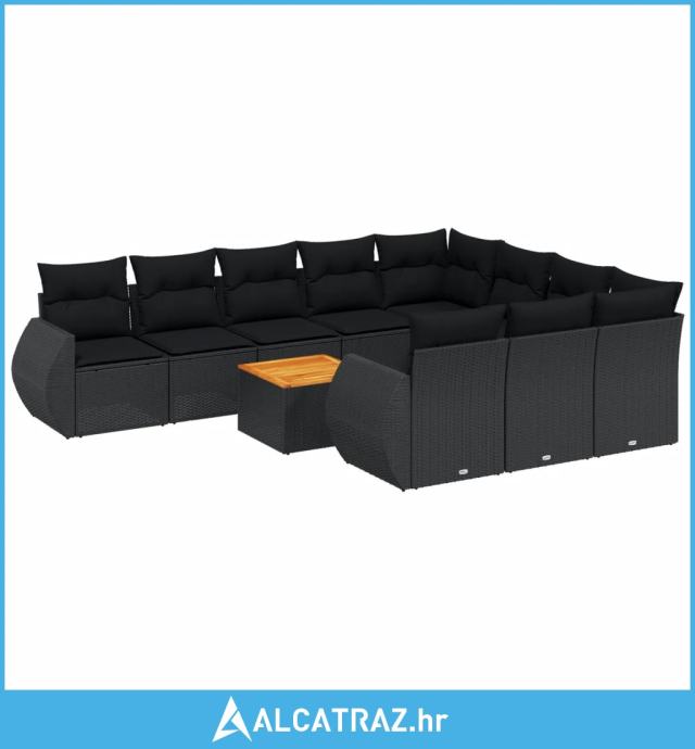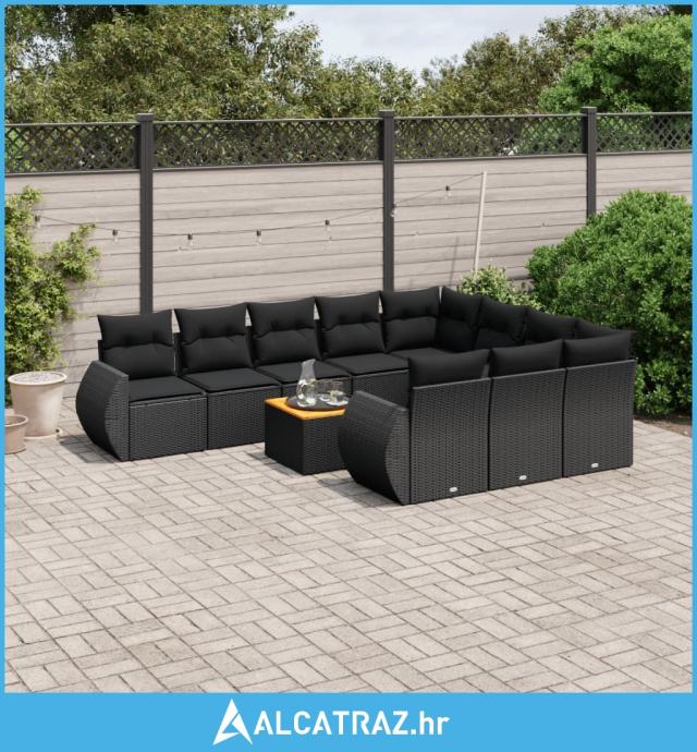 11-dijelni set vrtnih sofa od poliratana s jastucima crni - NOVO