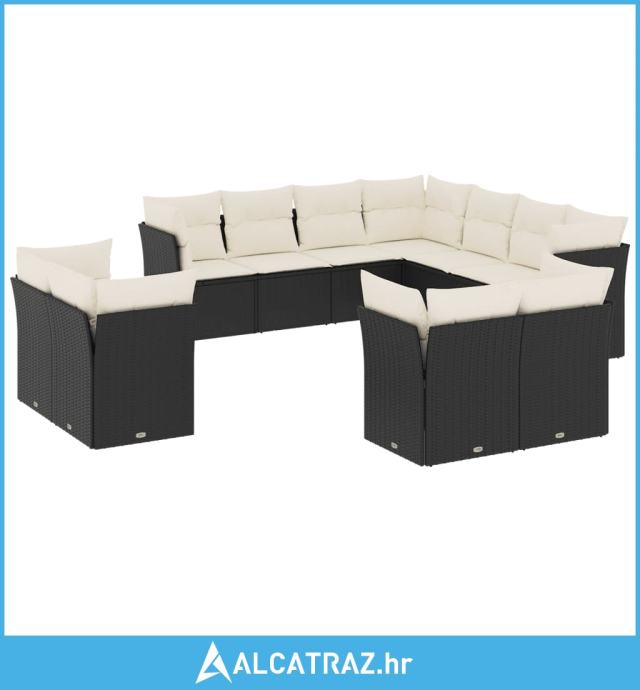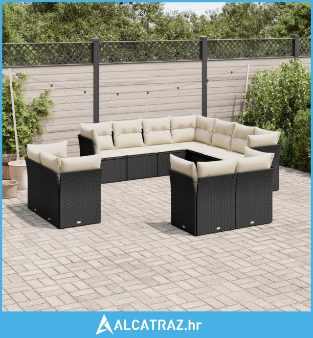 11-dijelni set vrtnih sofa od poliratana s jastucima crni - NOVO