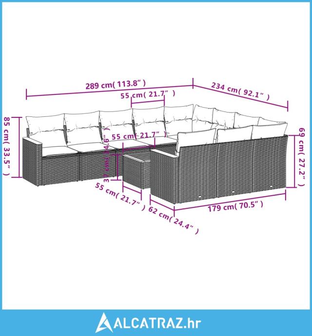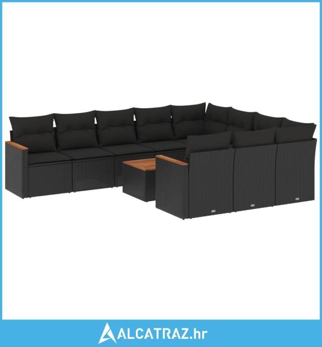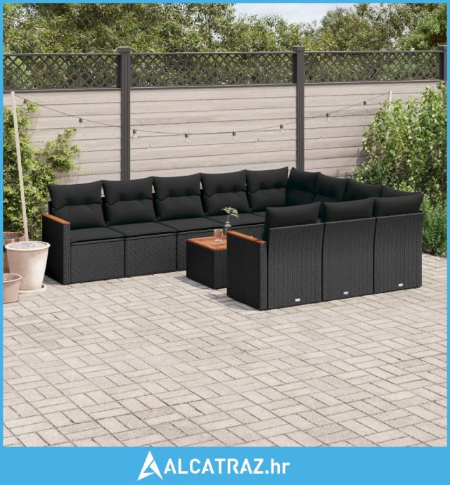 11-dijelni set vrtnih sofa od poliratana s jastucima crni - NOVO