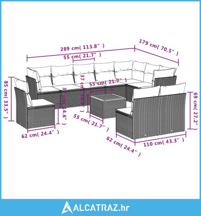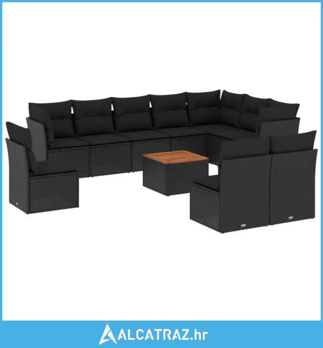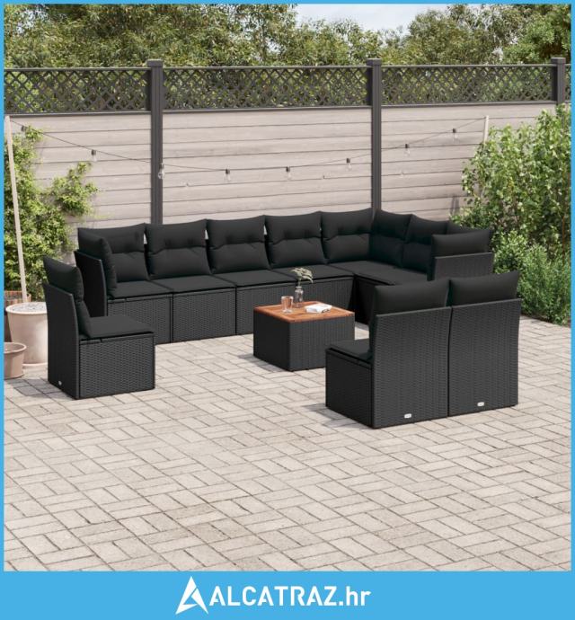 11-dijelni set vrtnih sofa od poliratana s jastucima crni - NOVO