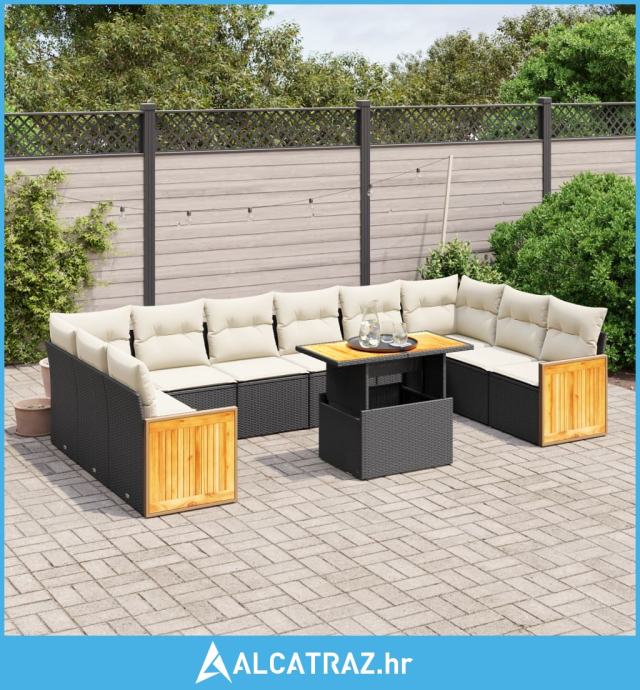 11-dijelni set vrtnih sofa od poliratana s jastucima crni - NOVO
