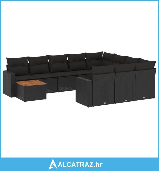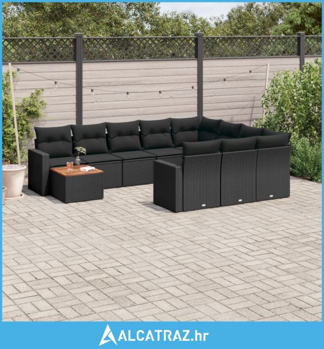 11-dijelni set vrtnih sofa od poliratana s jastucima crni - NOVO