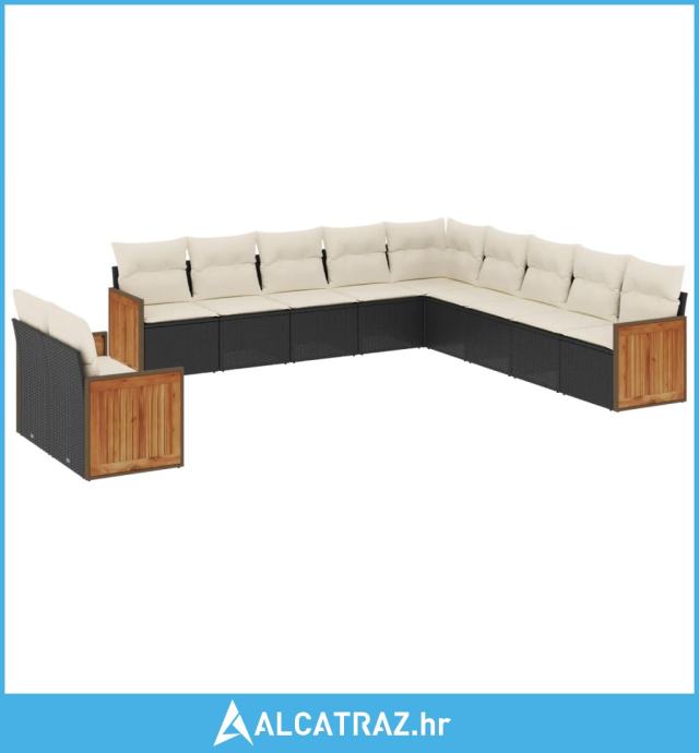 11-dijelni set vrtnih sofa od poliratana s jastucima crni - NOVO