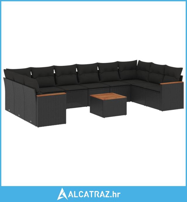 11-dijelni set vrtnih sofa od poliratana s jastucima crni - NOVO