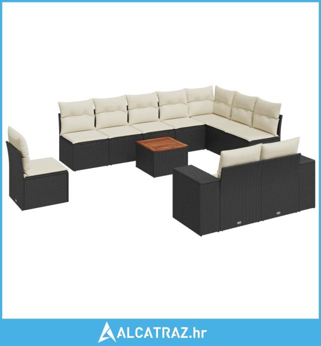 11-dijelni set vrtnih sofa od poliratana s jastucima crni - NOVO