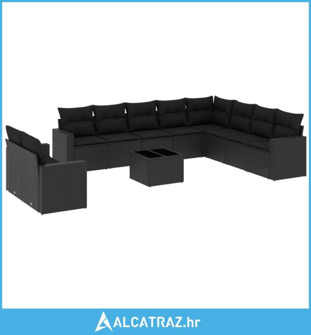 11-dijelni set vrtnih sofa od poliratana s jastucima crni - NOVO