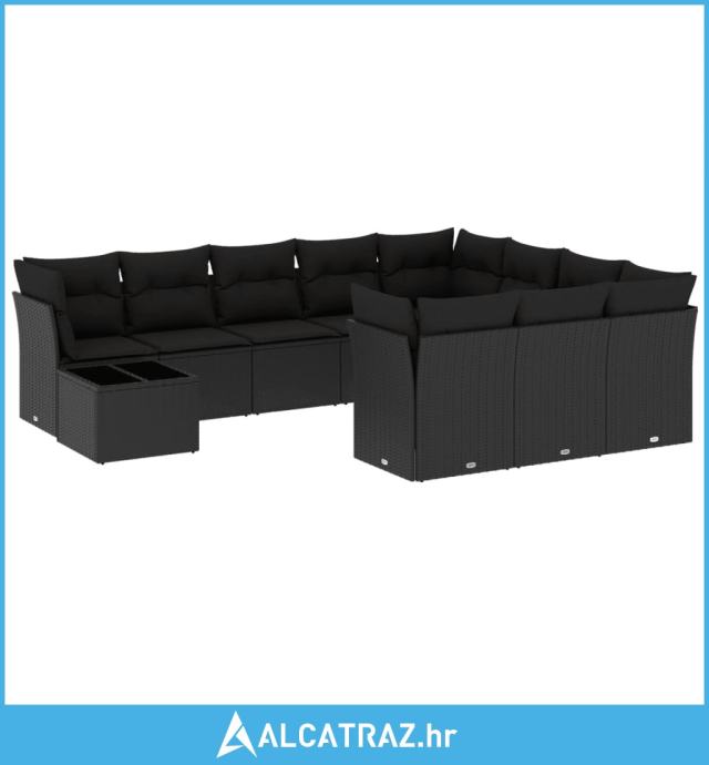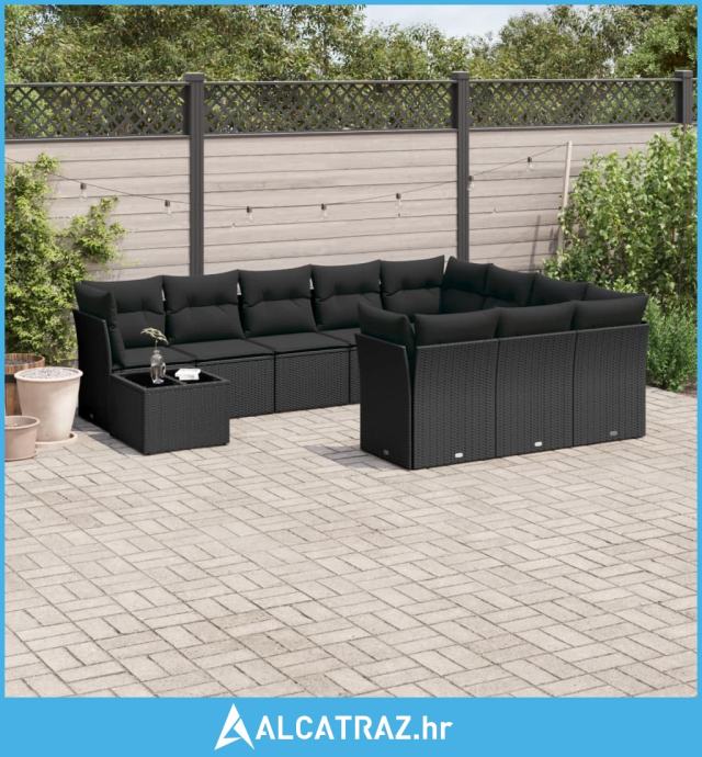 11-dijelni set vrtnih sofa od poliratana s jastucima crni - NOVO