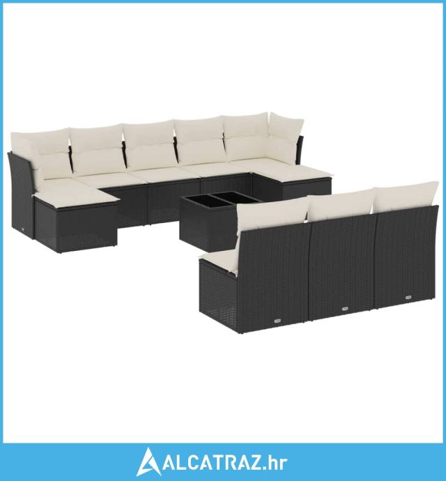 11-dijelni set vrtnih sofa od poliratana s jastucima crni - NOVO