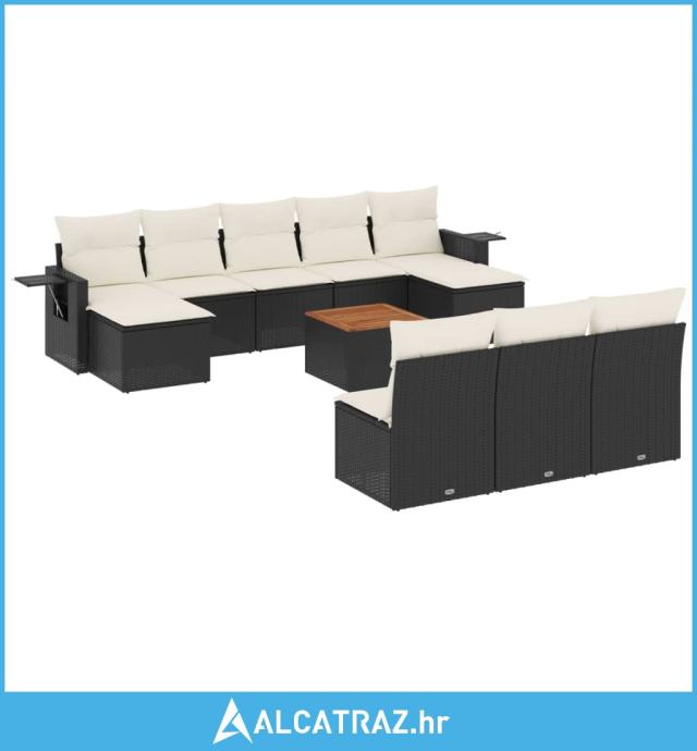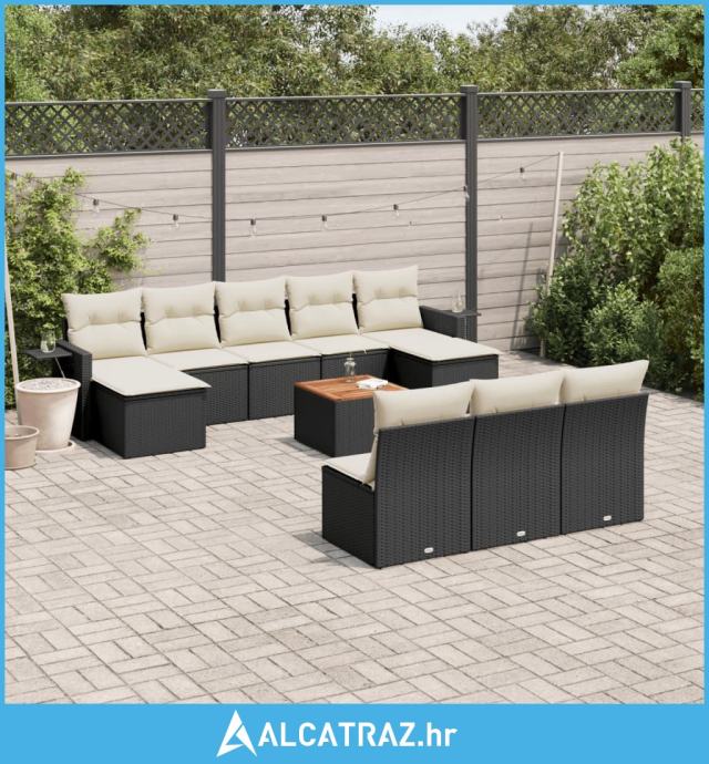 11-dijelni set vrtnih sofa od poliratana s jastucima crni - NOVO